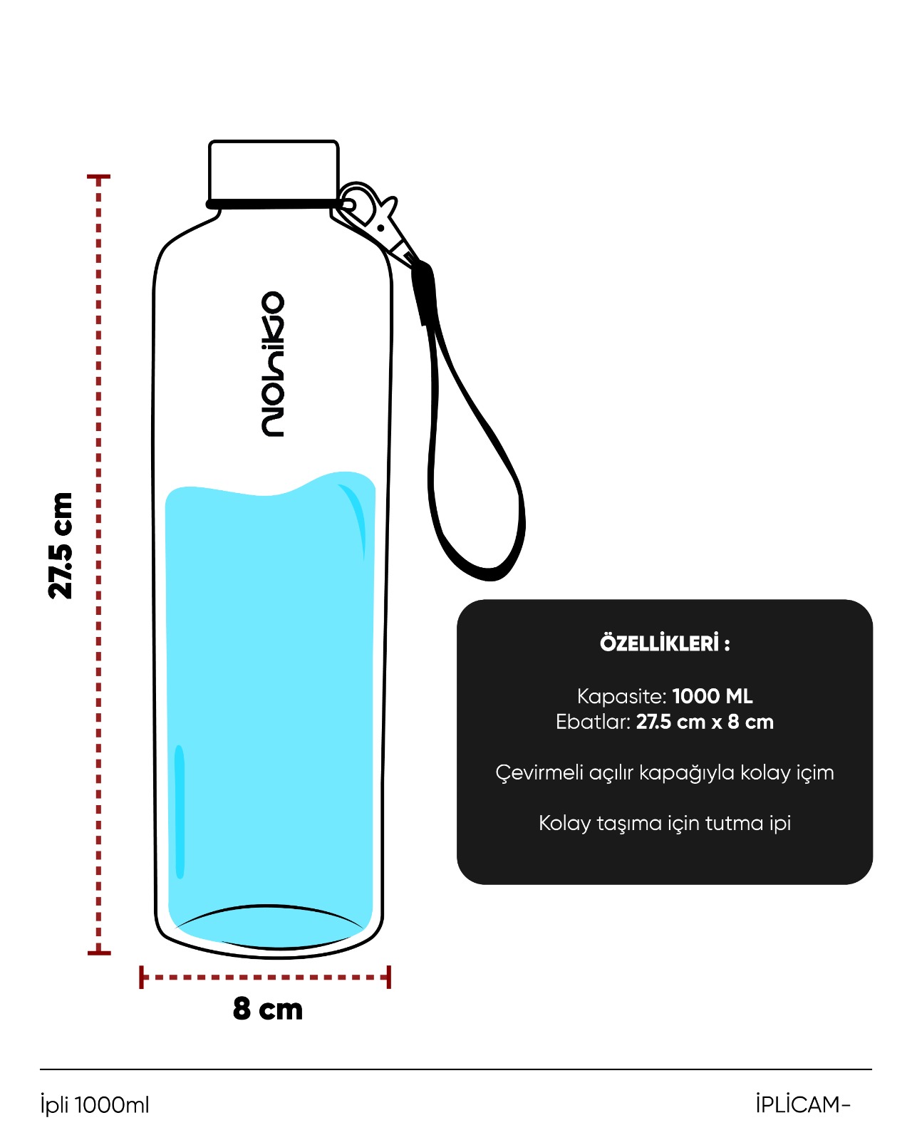 Dayanıklı cam yapısı içeceğini taze tutarken, pürüzsüz yüzeyi konforlu bir kullanım sunar.