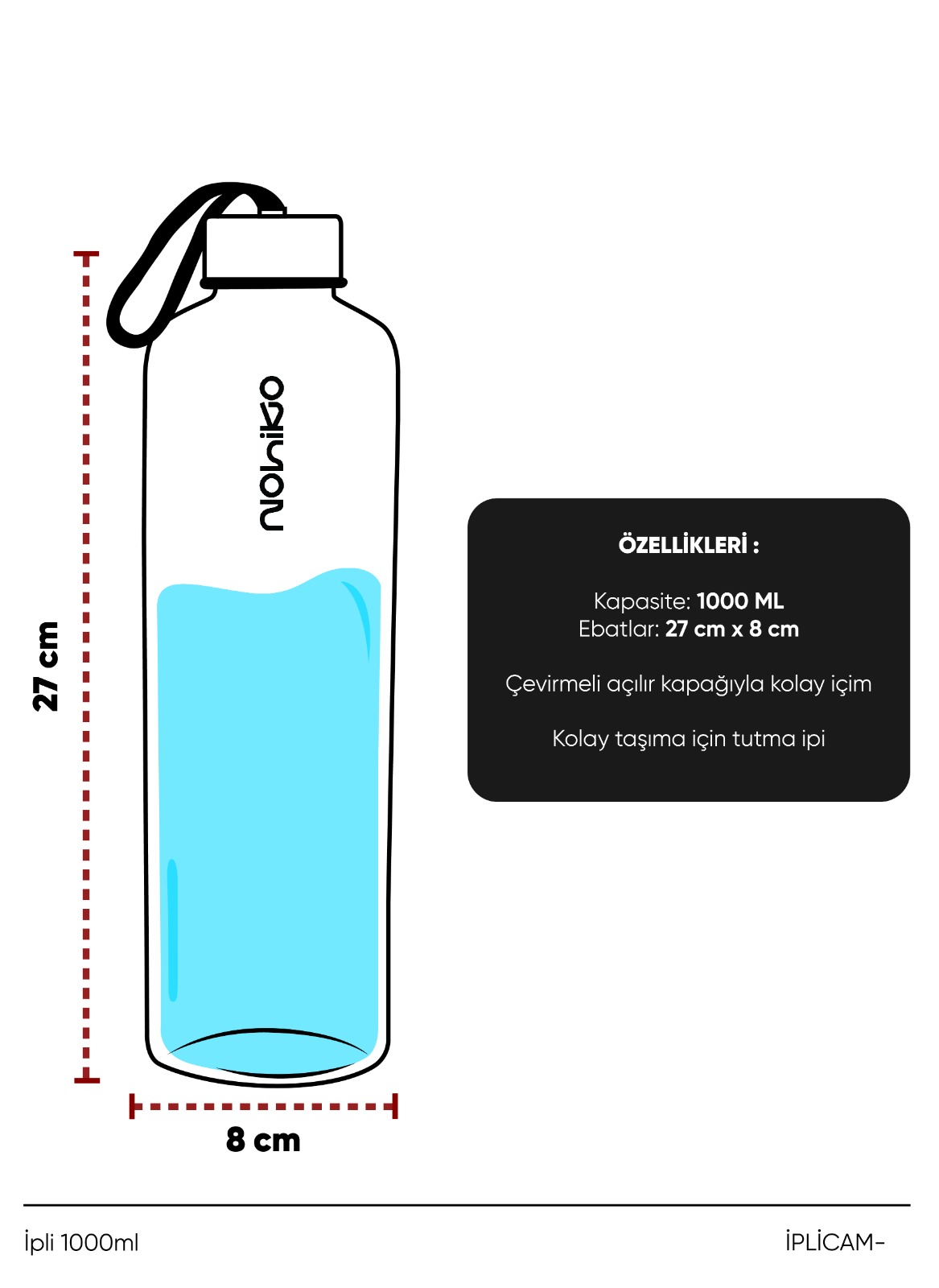 Pure Orange Premium İpli 1000mL Cam Matara