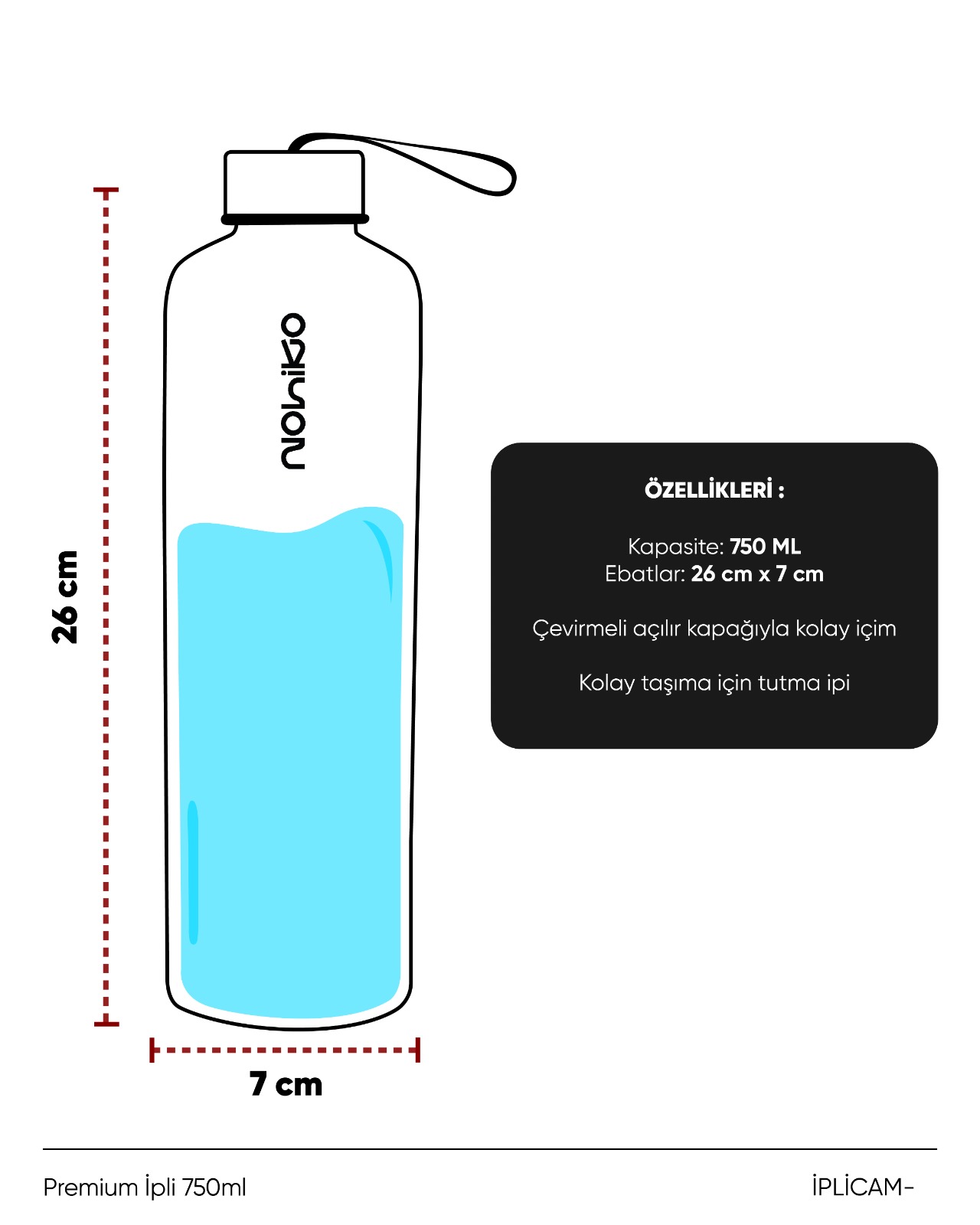 Pure Gray Premium İpli 750 mL Cam Matara